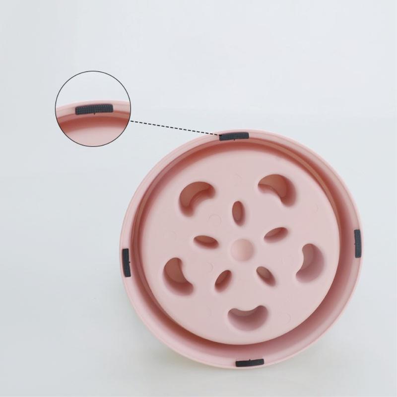 - Antypoślizgowa podstawa: Wyposażona w wiele silikonowych podkładek na spodzie, które mocno trzymają się podłogi, zapobiegając przesuwaniu się lub przewracaniu miski podczas posiłków.