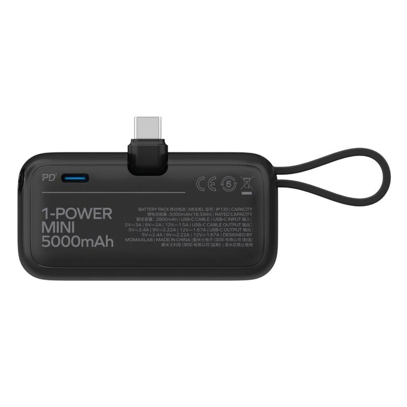 Momax 1-Power Mini Pop Art 5000mAh Power Bank / Przenośna ładowarka z wtyczką USB-C, kablem USB-C, portem USB-C - 20W