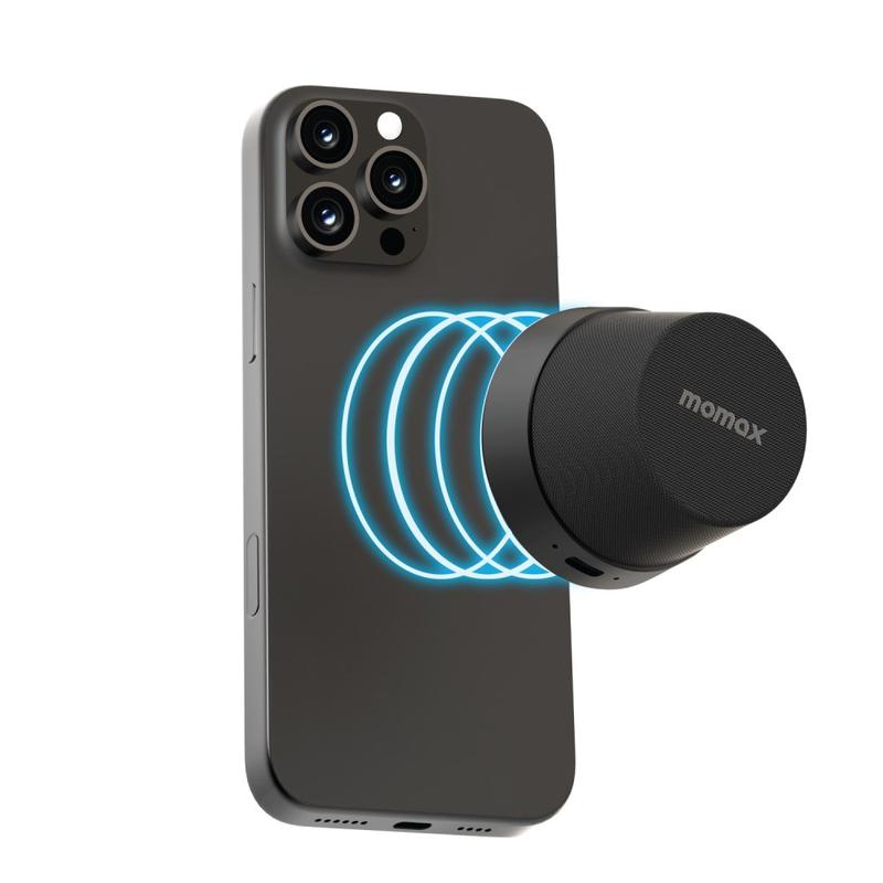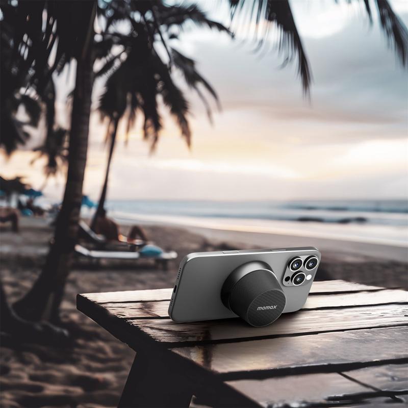 Momax 1-Vibe Go BS6 Magnetyczny mini głośnik Bluetooth i podstawka pod telefon, dźwięk 360° i wodoodporność IPX6