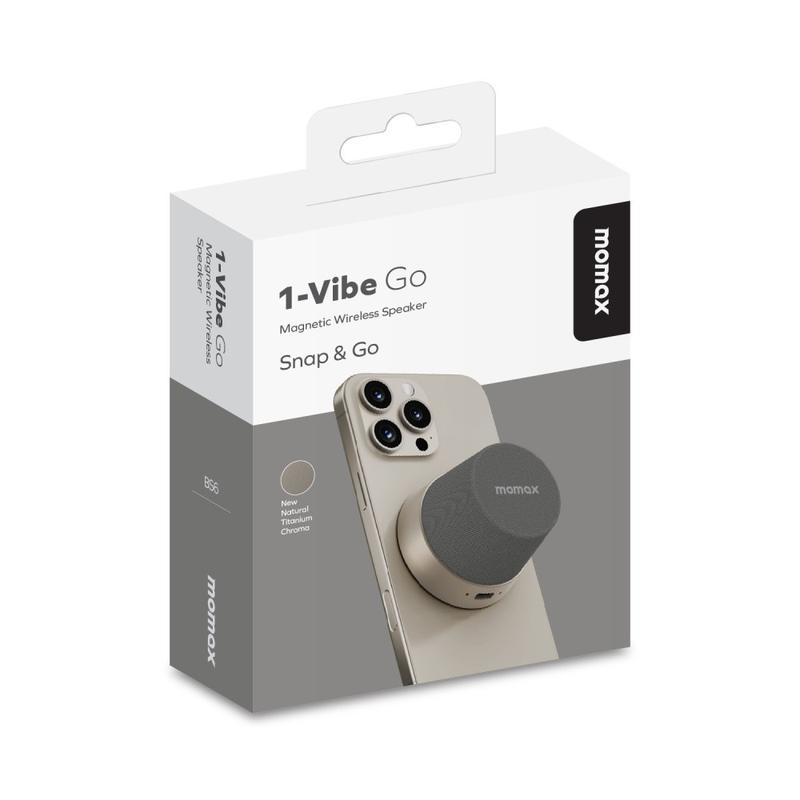 Magnetyczny mini głośnik Bluetooth MOMAX 1-Vibe Go BS6 to kompaktowe, wszechstronne rozwiązanie audio przeznaczone do codziennej rozrywki w domu lub w podróży. Jego ultra-mini magnetyczna konstrukcja łączy w sobie przenośny głośnik bezprzewodowy z praktyczną podstawką pod telefon, umożliwiając łatwe odtwarzanie muzyki, filmów i prowadzenie rozmów. Wyposażony w potężny przetwornik 40 mm i 360° wyjście dźwięku, zapewnia wciągający dźwięk w zaskakująco małej obudowie, a wodoodporność IPX6 sprawia, że nadaje się do codziennego użytku w różnych środowiskach.