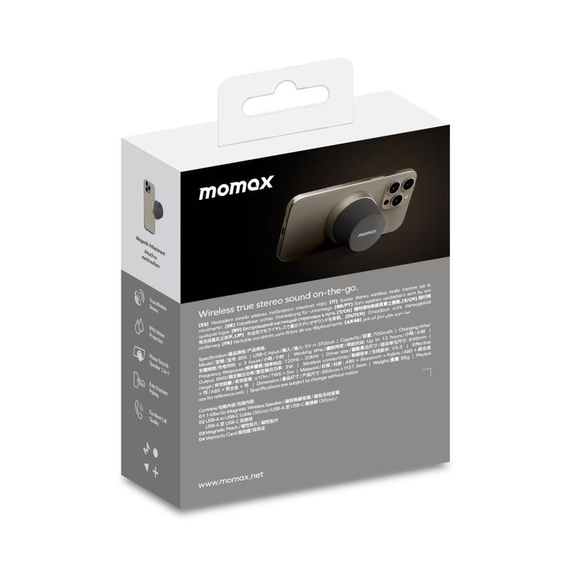 Momax 1-Vibe Go BS6 Magnetyczny mini głośnik Bluetooth i podstawka pod telefon, dźwięk 360° i wodoodporność IPX6