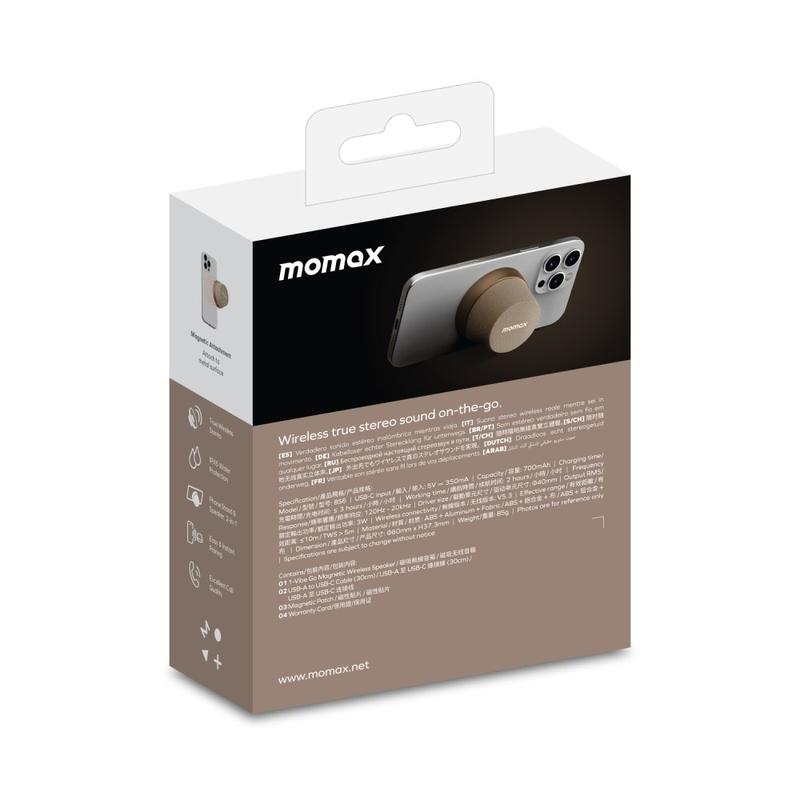 Momax 1-Vibe Go BS6 Magnetyczny mini głośnik Bluetooth i podstawka pod telefon, dźwięk 360° i wodoodporność IPX6