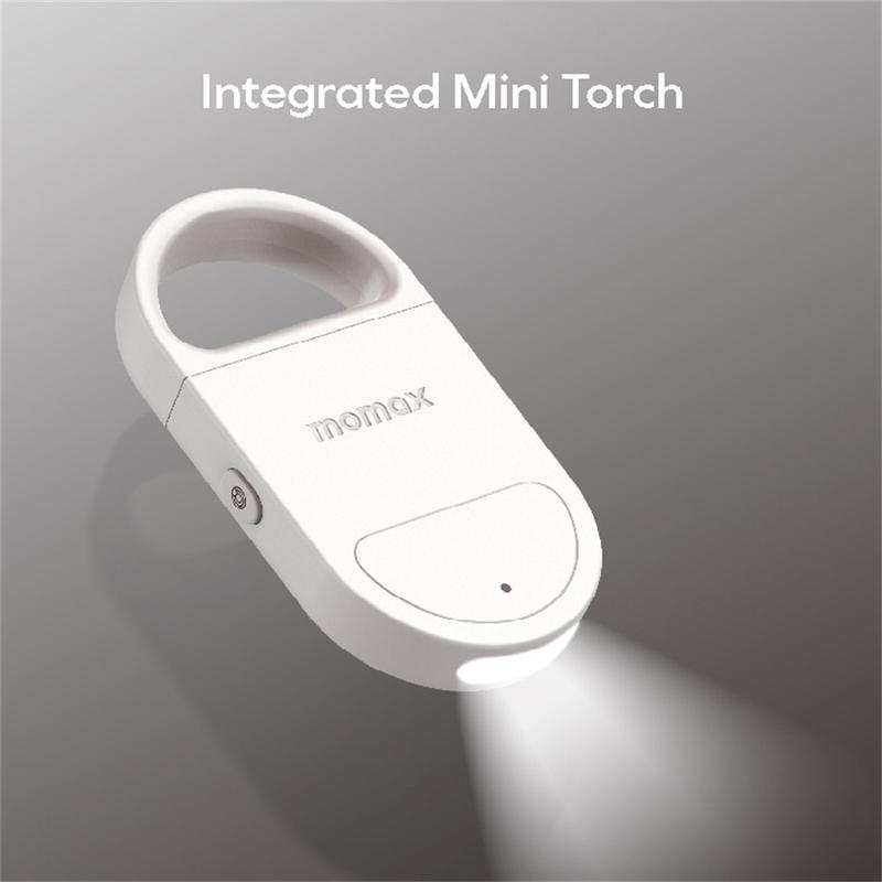Osobisty alarm bezpieczeństwa Momax PinBuzz - inteligentna syrena 100 dB z funkcją Apple Find My, zabezpieczeniem przed kradzieżą i oświetleniem LED