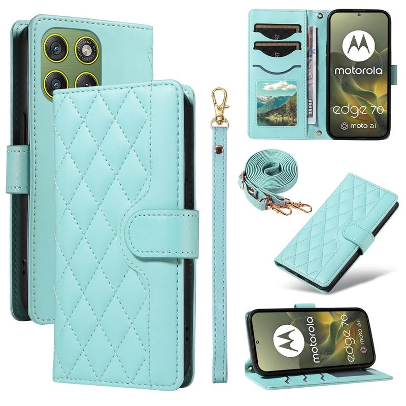Luksusowe pikowane etui z paskiem na ramię i nadgarstek dla Motorola Edge 70 - pokrowiec ochronny z wzorem rombu