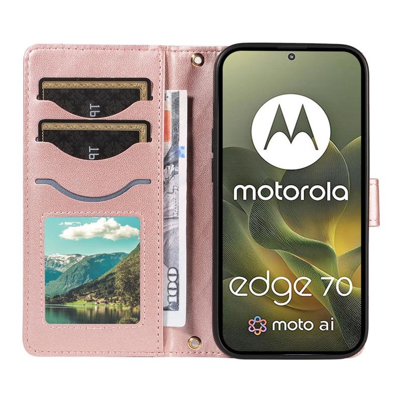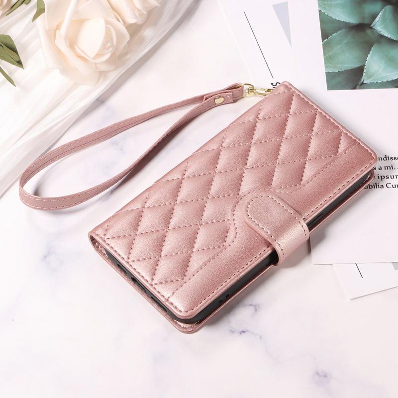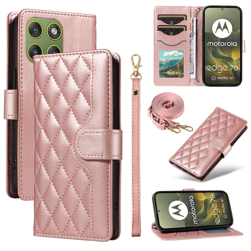 Luksusowe pikowane etui z paskiem na ramię i nadgarstek dla Motorola Edge 70 - pokrowiec ochronny z wzorem rombu