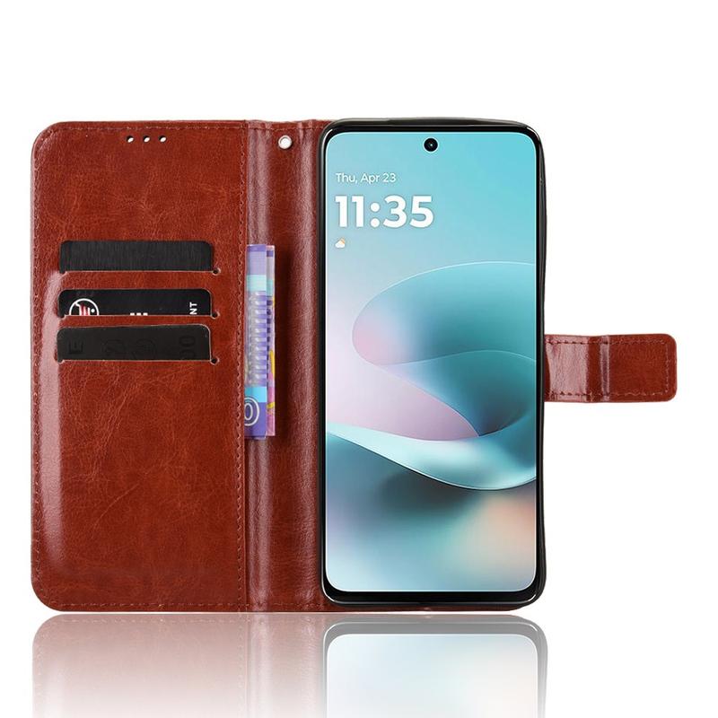Nadaj swojemu nowemu Motorola Moto G67 Power, Moto G57 Power, Moto G57 wyrafinowany, klasyczny wygląd, zastępując jednocześnie swój codzienny portfel. Zewnętrzna powłoka poliuretanowa o fakturze Crazy Horse w połączeniu z absorbującą wstrząsy powłoką TPU chroni przed upadkami i zadrapaniami, a sprytne kieszenie pozwalają uporządkować karty i gotówkę.