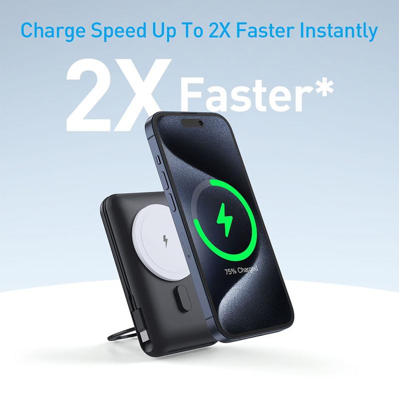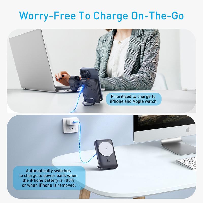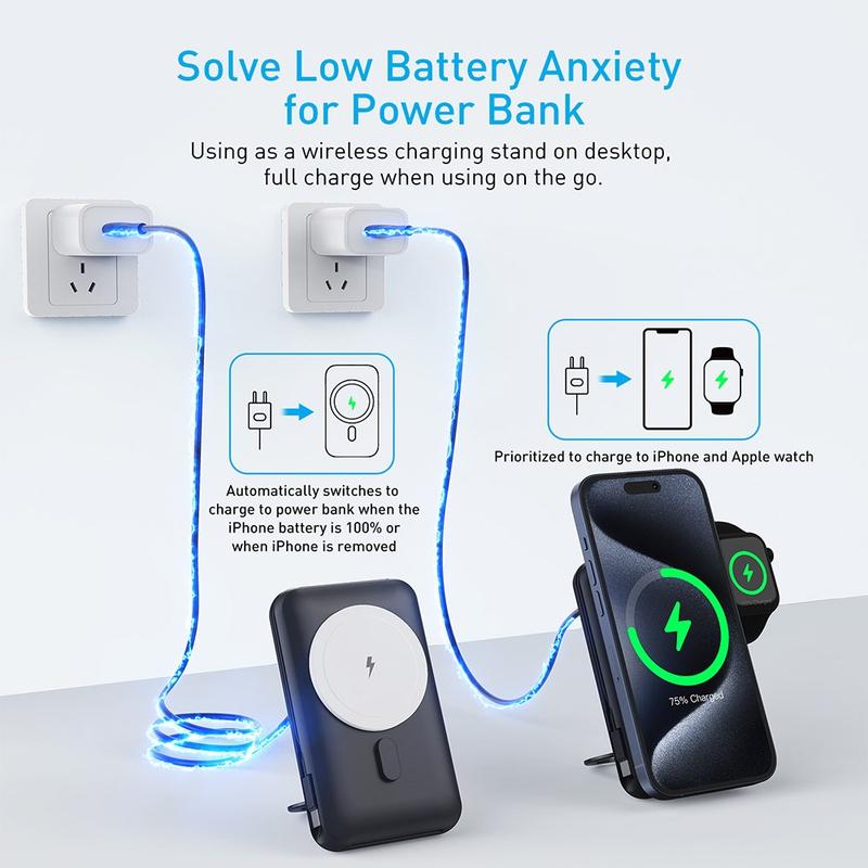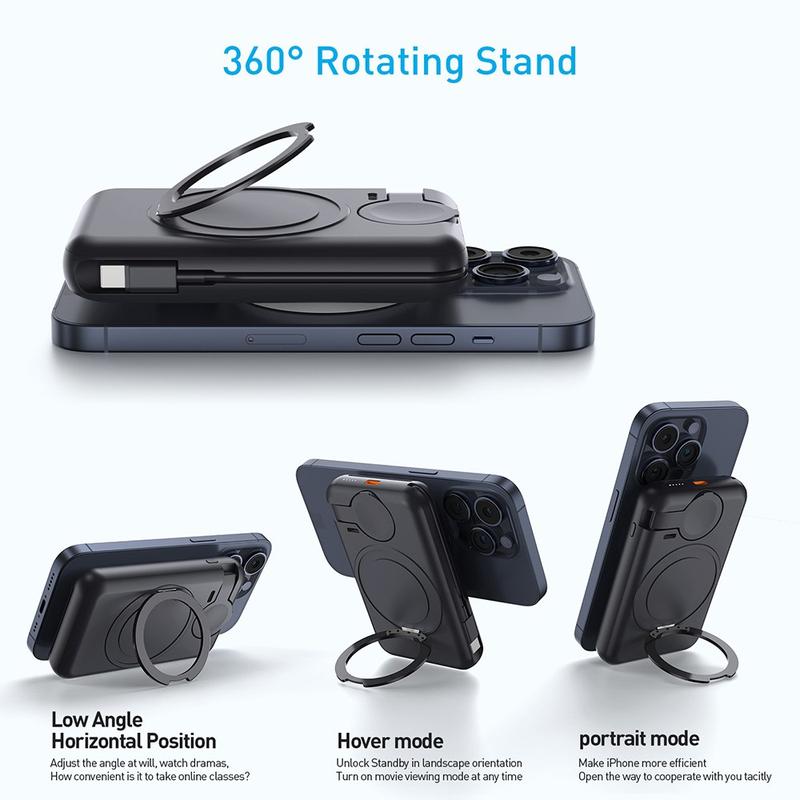 Wyróżnia się również tym, że łączy w sobie przenośność z najwyższą praktycznością. Funkcja ładowania magnetycznego ułatwia umieszczenie telefonu, wbudowany kabel zmniejsza bałagan, a obrotowa podstawka zapewnia poziom użyteczności, którego nie oferują wiele zwykłych powerbanków. Dla użytkowników, którzy chcą bardziej wszechstronnego i dopracowanego rozwiązania do ładowania przenośnego, jest to bardzo dobra opcja.