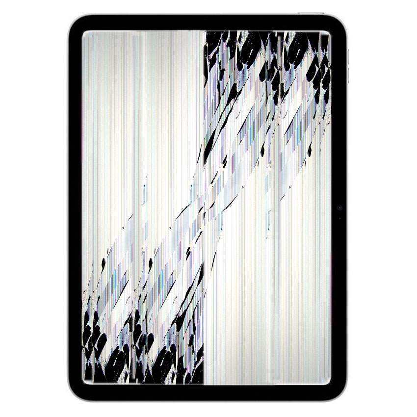 iPad (2022) wygląda tak jak na zdjęciu? Jeśli ekran dotykowy nie reaguje lub jest mocno uszkodzony a wyświetlacz LCD pokazuje dziwne rzeczy lub w ogóle nie działa, wtedy urządzenie wymaga naprawy LCD i ekranu dotykowego.