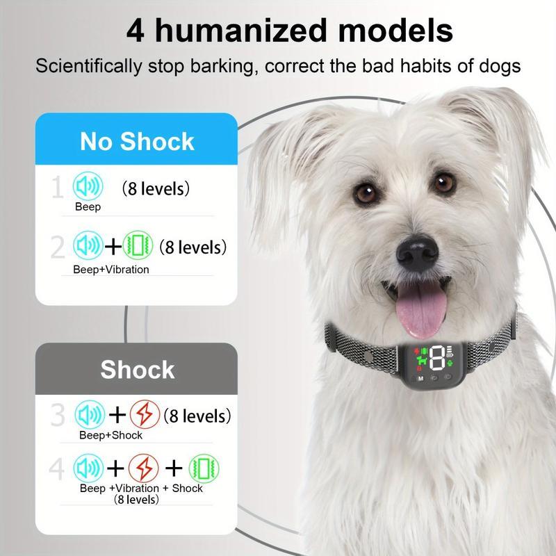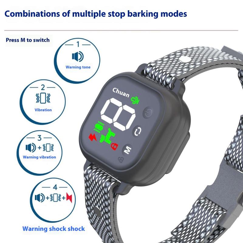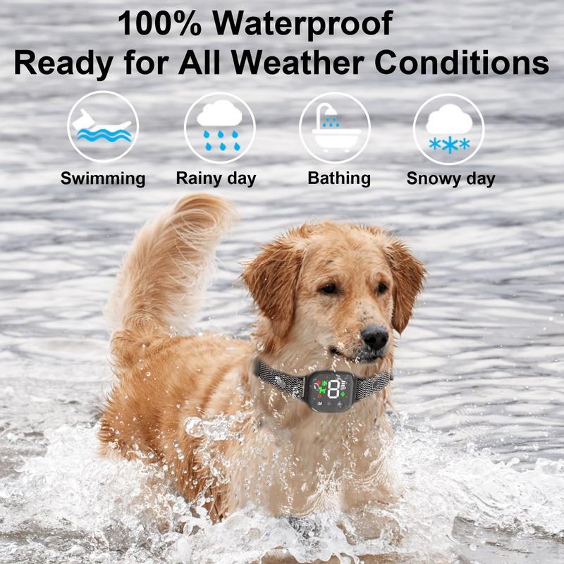 Obroża kontrolująca szczekanie psa z kolorowym ekranem - Automatyczny trener wstrząsów, wibracji i dźwięku - Poziom wodoodporności: IP67, długość obroży: 10-70 cm