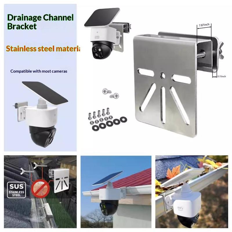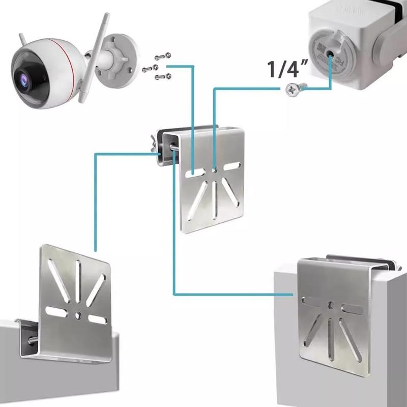 Uchwyt może być instalowany na rynnach, ogrodzeniach, dachach i podobnych konstrukcjach, oferując elastyczne opcje umieszczania w konfiguracjach nadzoru mieszkaniowego, komercyjnego i przemysłowego.