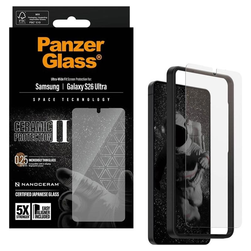 PanzerGlass Ceramic II Protection Ultra-Wide Fit EasyAligner - osłona ekranu do Samsung Galaxy S26 Ultra - szkło ceramiczne, odporne na odciski palców, kompatybilne z etui