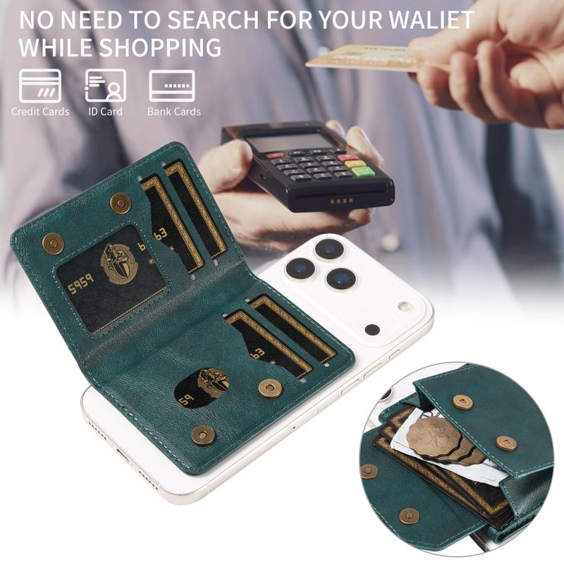 Wykonany z wysokiej jakości sztucznej skóry portfel oferuje wyrafinowany wygląd z miękkim i trwałym wykończeniem. Jego smukły i lekki profil z łatwością mieści się w kieszeniach lub kurtkach i może być również używany jako samodzielny portfel po odłączeniu od telefonu.