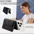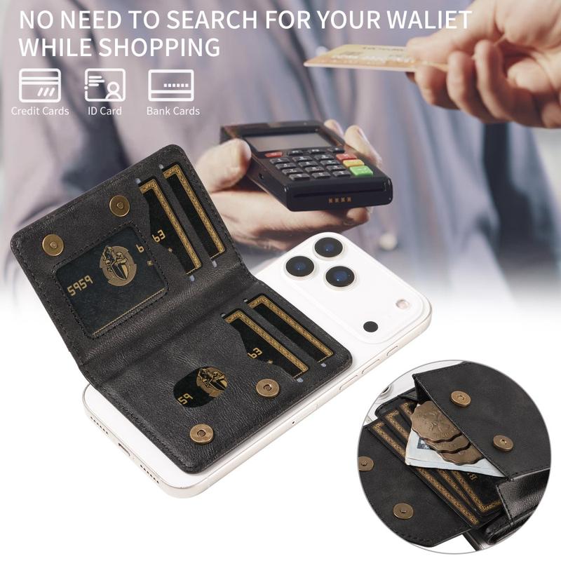 Wykonany z wysokiej jakości sztucznej skóry portfel oferuje wyrafinowany wygląd z miękkim i trwałym wykończeniem. Jego smukły i lekki profil z łatwością mieści się w kieszeniach lub kurtkach i może być również używany jako samodzielny portfel po odłączeniu od telefonu.