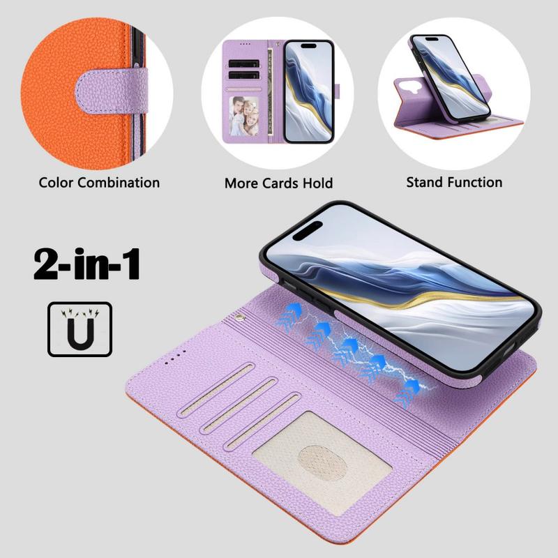 Ciesz się swobodą odłączanego portfela 2 w 1. Posiada on: 2 sloty na karty, 1 slot na zdjęcie, 1 przegrodę na gotówkę.
