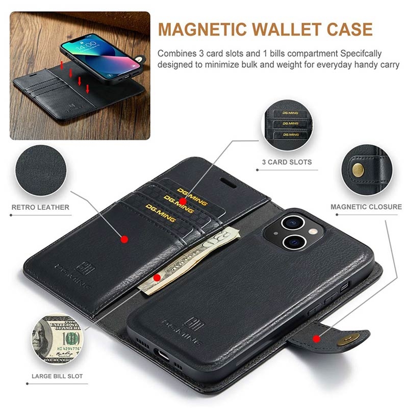 Odczepialne Skórzane Etui-Portfel DG.Ming 2-w-1 do telefonu iPhone 15