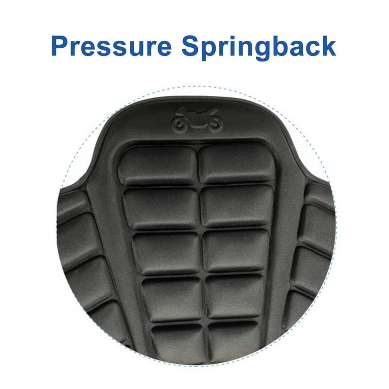 Poduszka na siedzenie motocyklowe - oddychająca poduszka ze spandexu z wypełnieniem z gąbki piankowej, odciążająca konstrukcja sprężynowa i antypoślizgowa podstawa