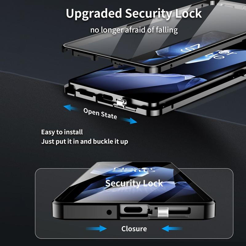 - Etui na OnePlus 15 składające się z metalowej ramy i przodu oraz tyłu z hartowanego szkła