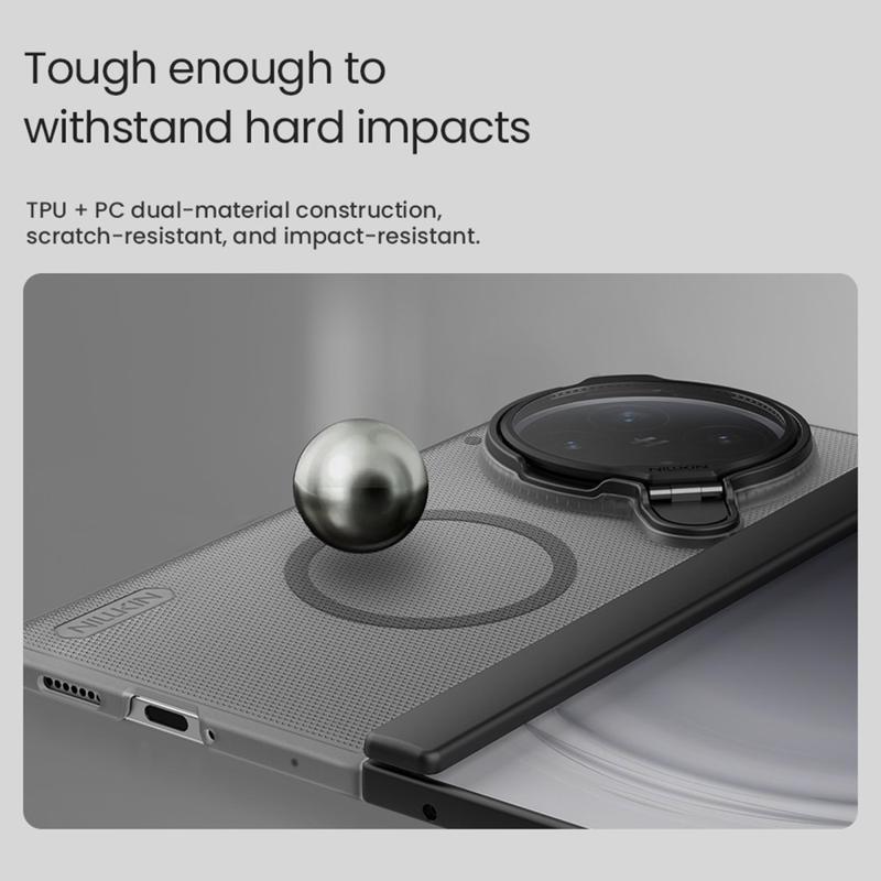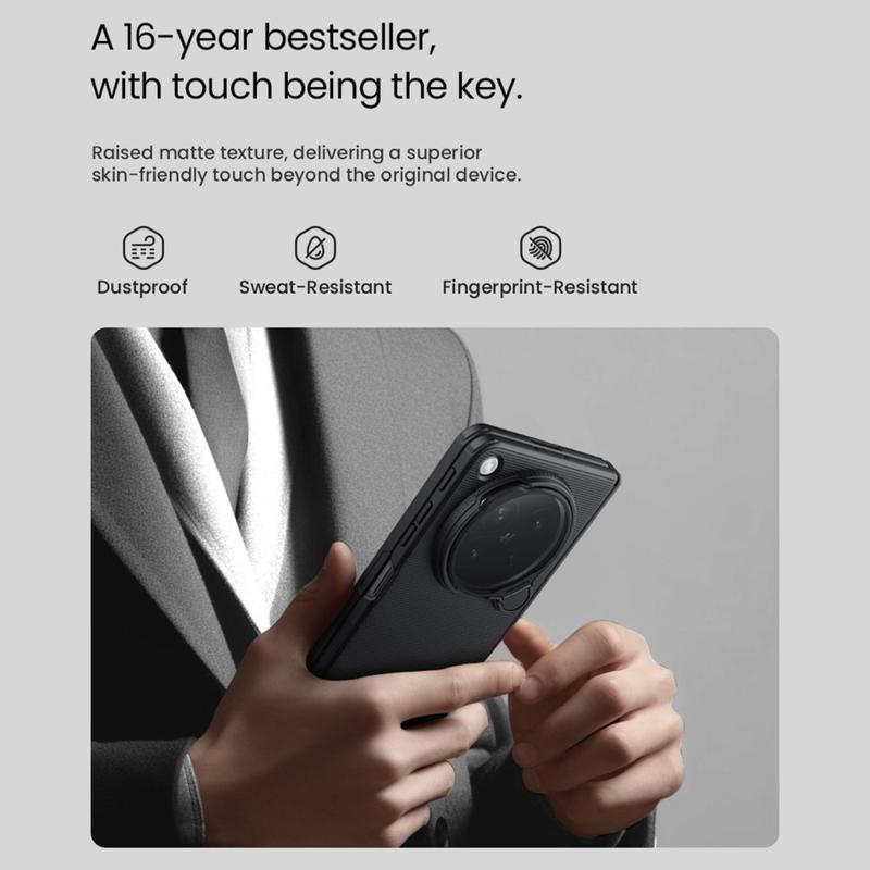 Łącząc charakterystyczną dla Nillkin trwałość z inteligentnym designem, etui Super Frosted Shield Prop Case wyróżnia się jako niezbędne akcesorium dla posiadaczy Oppo Find N6. Od ochrony obiektywu aparatu po poręczną podpórkę, każda funkcja zwiększa komfort użytkowania, zachowując jednocześnie elegancki, profesjonalny wygląd. Zbudowany z myślą o trwałości i wyjątkowo łatwy w użyciu, jest idealnym połączeniem funkcjonalności i stylu.