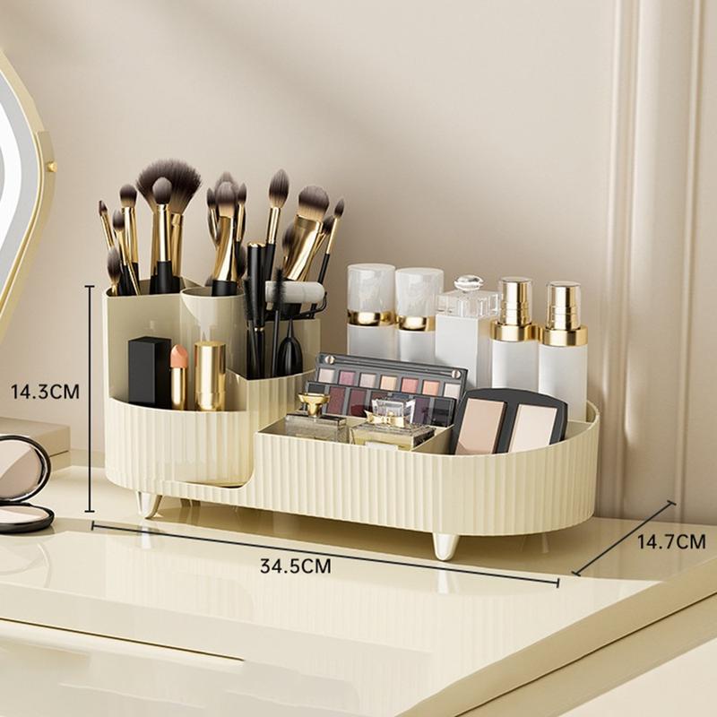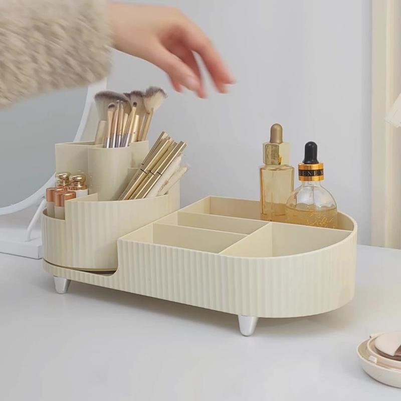 Okrągły uchwyt na pędzle obraca się swobodnie, umożliwiając szybki dostęp do pędzli do makijażu, ołówków lub narzędzi. Koniec z szukaniem niezbędnych rzeczy - wszystko pozostaje widoczne i w zasięgu ręki.