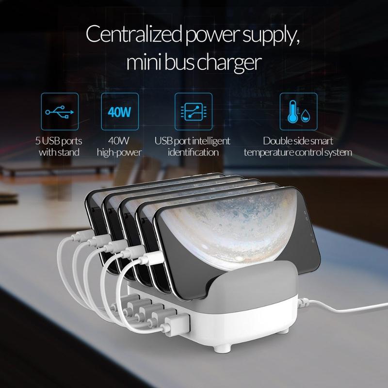 Stacja ładująca Orico DUK-5P z 5 portami USB o mocy 40W z uchwytem na telefon i tablet - wtyczka UE