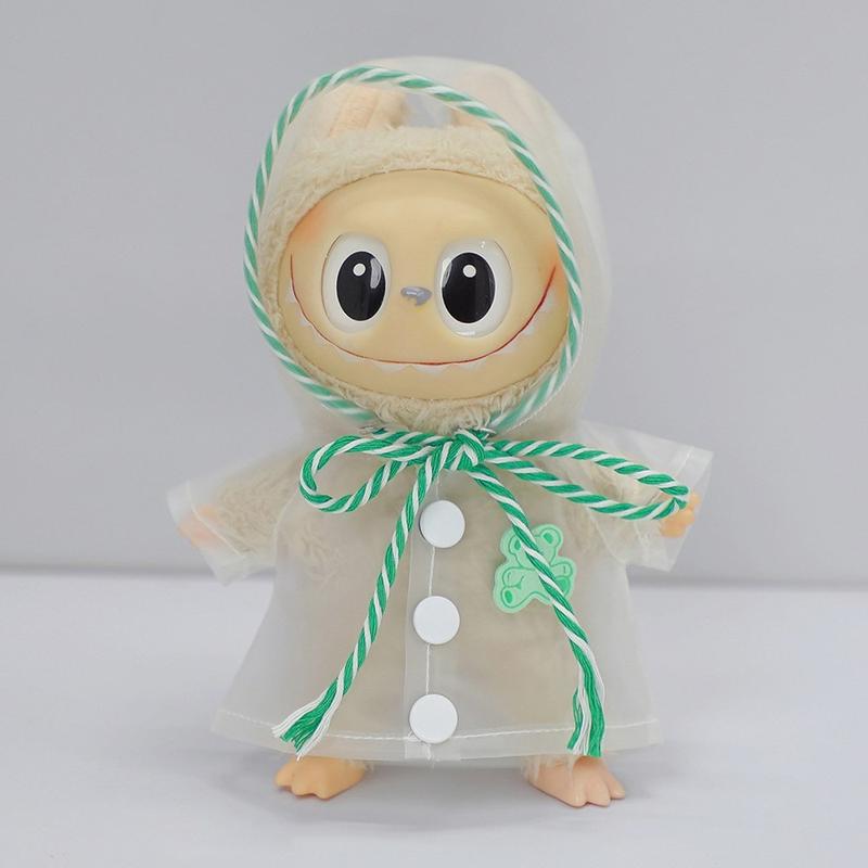Kreskówkowy płaszcz przeciwdeszczowy z kapturem dla lalki Labubu 17 cm