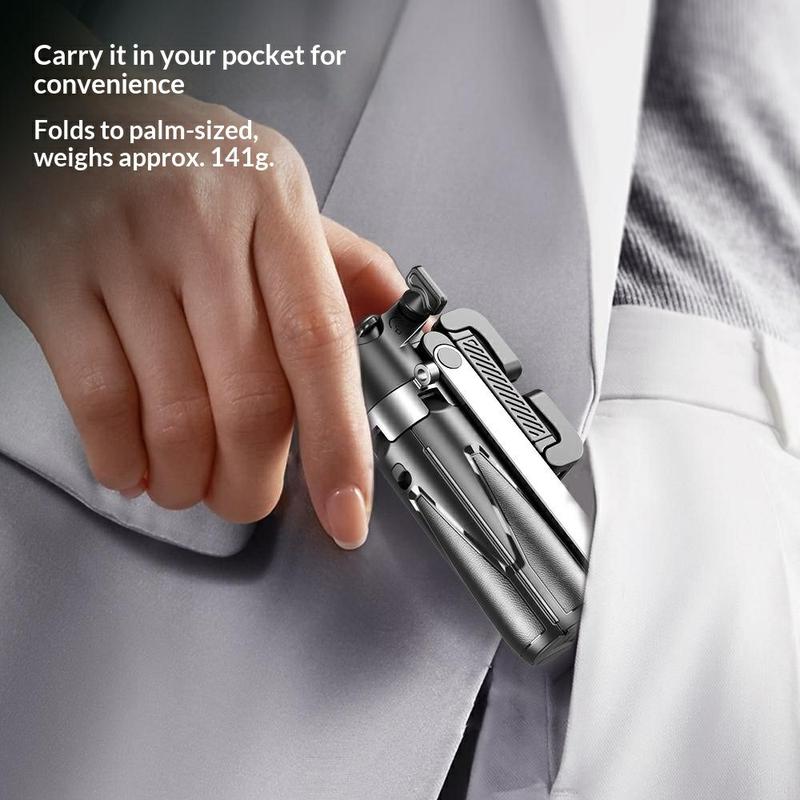 Składana konstrukcja rozciąga się od 11,7 cm do 41,5 cm, ułatwiając przechowywanie w torbie lub plecaku. Lekka konstrukcja zapewnia wygodne użytkowanie podczas podróży i zdjęć plenerowych.