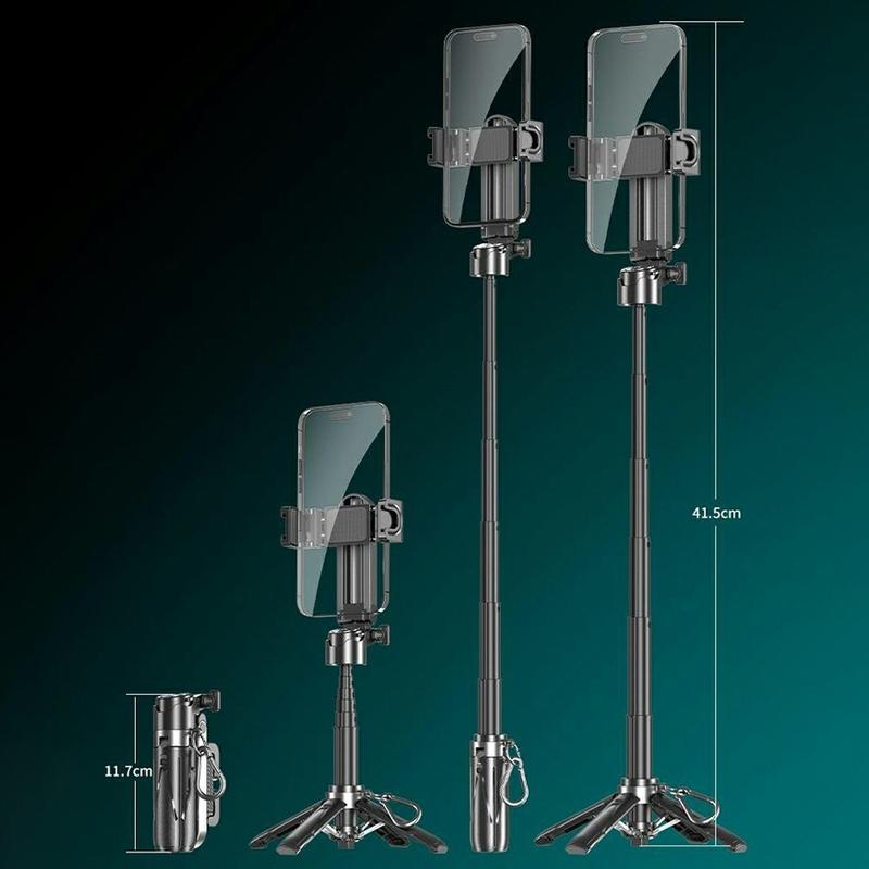 Mini statyw do selfie P15-Y łączy w sobie kij do selfie, stabilny statyw, bezprzewodowy pilot i kompaktowe światło wypełniające w jednym lekkim akcesorium. Zaprojektowany z myślą o twórcach w ruchu, zapewnia elastyczność i wygodę podczas fotografowania, nagrywania wideo i transmisji na żywo.