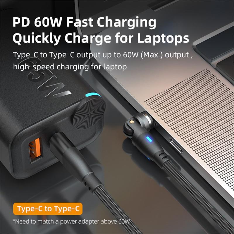 Dzięki obsłudze zasilania o mocy do 60 W nadaje się nie tylko do telefonów, ale także do tabletów i wielu laptopów z portem USB-C. Konstrukcja umożliwiająca obrót o 540 stopni (360 stopni obrotu + 180 stopni zgięcia) ułatwia wygodne trzymanie urządzenia podczas ładowania i pomaga zapobiegać niepożądanemu naprężeniu lub splątaniu kabla. Wykończony obudową ze stopu aluminium i wytrzymałą nylonową plecionką, jest przystosowany do częstego zginania i codziennego użytkowania.
