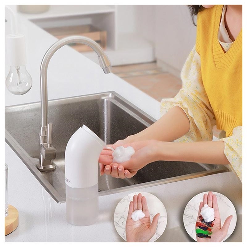 Po prostu podsuń ręce pod czujnik podczerwieni, a podajnik uwolni pianę, co umożliwi głębokie i delikatne wyczyszczenie dłoni. Elegancki podajnik mydła będzie wyglądał doskonale w łazience, a także to bardziej higieniczny sposób mycia dłoni, ponieważ nie dotykasz podajnika.