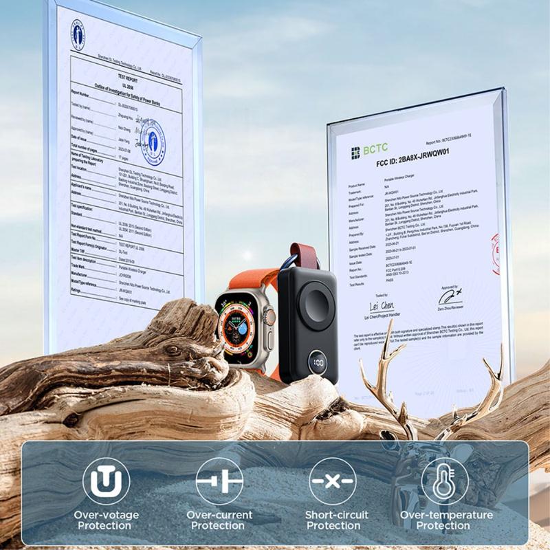 JR-WQW01 to praktyczne rozwiązanie, jeśli chcesz ładować Apple Watch bez konieczności korzystania z gniazdek ściennych. Kompaktowa forma breloczka do kluczy, czytelny wyświetlacz i automatyczne ładowanie sprawiają, że można go łatwo używać w dowolnym miejscu. Dzięki wbudowanym zabezpieczeniom jest niezawodnym zapasowym źródłem zasilania dla użytkowników Apple Watch na co dzień.