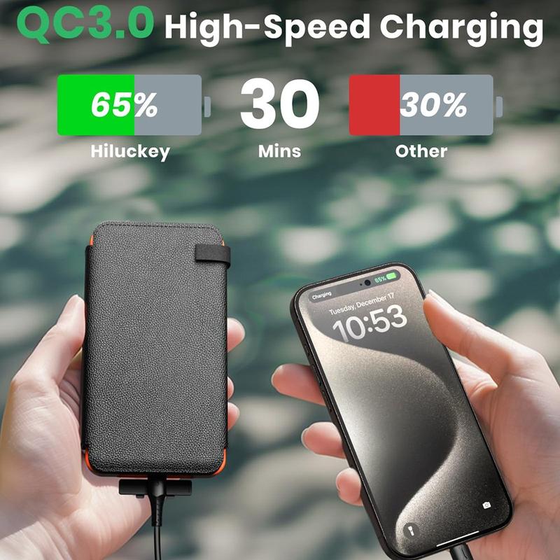 Obsługując szybkie ładowanie QC3.0, power bank może ładować kompatybilne urządzenia znacznie szybciej niż standardowe ładowarki. Dzięki wielu portom można ładować jednocześnie do trzech urządzeń, co czyni go praktycznym źródłem zasilania podczas wypraw na świeżym powietrzu lub codziennych podróży. Wbudowana latarka LED o długim czasie pracy stanowi dodatkowe zabezpieczenie podczas biwakowania i w sytuacjach awaryjnych.