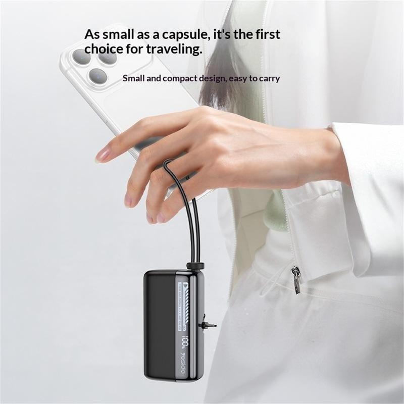 Powerbank YESIDO YP99 to praktyczna przenośna ładowarka zaprojektowana z myślą o szybkim i wygodnym ładowaniu w domu, w pracy lub w podróży. Dzięki pojemności akumulatora wynoszącej 10000mAh, kompaktowej obudowie w kształcie kapsułki oraz wbudowanemu kablowi USB-C do Lightning stanowi proste, kompleksowe rozwiązanie do ładowania nowoczesnych smartfonów i innych kompatybilnych urządzeń. Jego niewielkie rozmiary sprawiają, że z łatwością zmieści się w torbie, kieszeni lub codziennym zestawie podróżnym.
