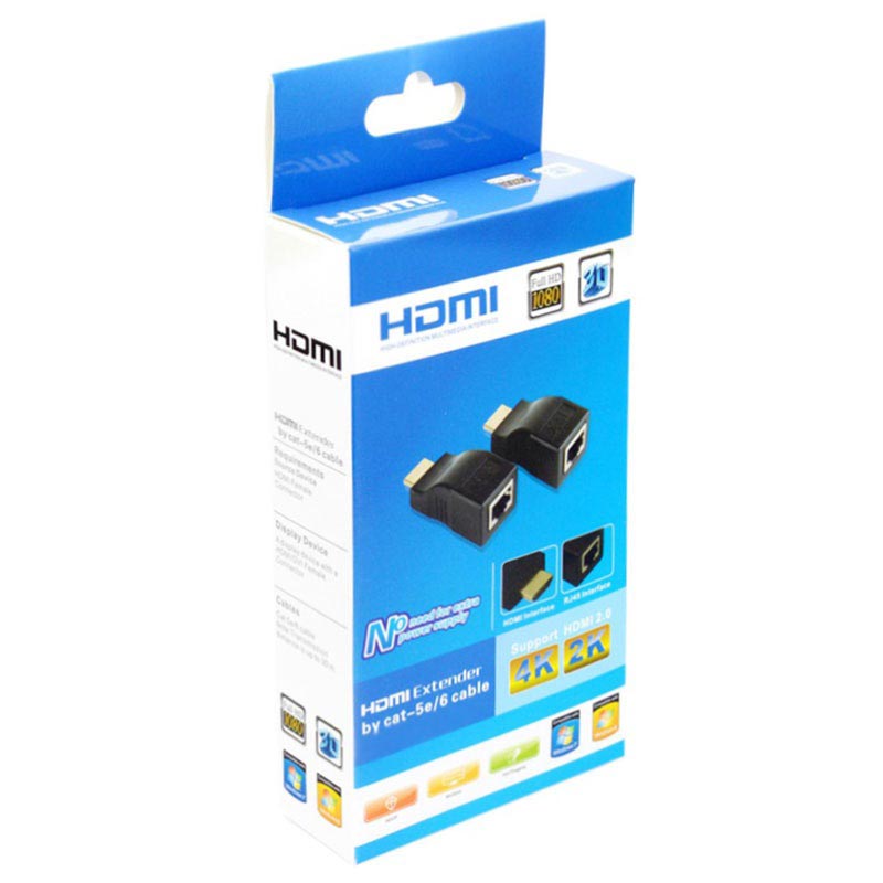 Wysokiej jakości przedłużacze HD-208 RJ45 - HDMI umożliwiają przedłużenie sygnałów HDMI do 30 metrów z wykorzystaniem kabli sieciowych Cat5e lub Cat6. W zestawie znajduje się jeden nadajnik (TX) i jeden odbiornik (RX) z interfejsem HDMI męskim / RJ45 żeńskim. Wystarczy podłączyć nadajnik do urządzenia, które udostępnia sygnał, podłączyć odbiornik do urządzenia, które ma odbierać sygnał i połączyć go za pomocą własnego kabla LAN.