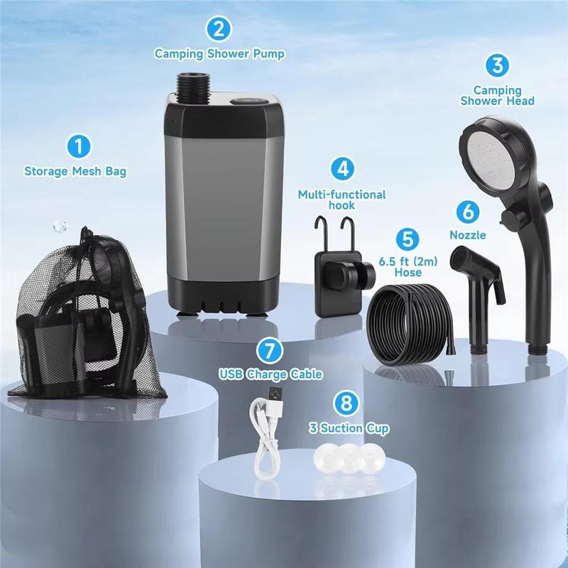 - Przenośna elektryczna pompa prysznicowa do kempingu, podróży, na plażę, do mycia zwierząt i czyszczenia na świeżym powietrzu