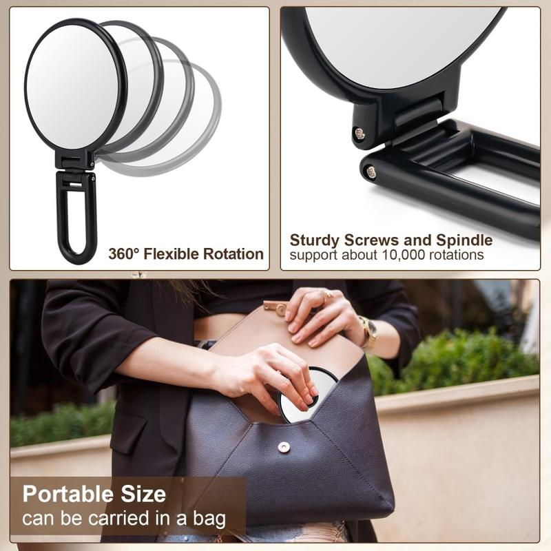 Składane, przenośne, 10-krotnie powiększające lusterko do makijażu z uchwytem 360 stopni