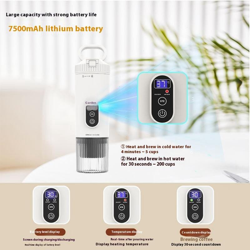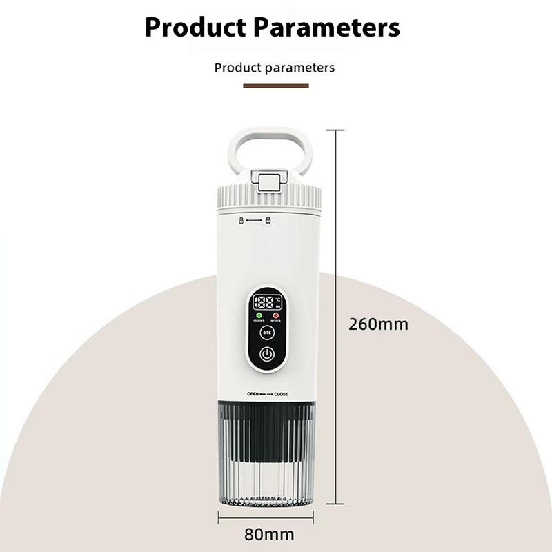 Ciesz się kawą o jakości baristy w dowolnym miejscu dzięki przenośnemu ekspresowi do kawy, kompaktowemu i bezprzewodowemu ekspresowi do kawy zaprojektowanemu do podróży, przygód na świeżym powietrzu i codziennego użytku. Wyposażony w dwa tryby pracy, umożliwia ekstrakcję w temperaturze pokojowej dla bogatych smaków kawy i ekstrakcję podgrzewaną dla szybkiego, gorącego espresso na żądanie. Dzięki akumulatorowi o pojemności 7500 mAh, ten ekspres do kawy zapewnia 4-5 użyć w trybie podgrzewania lub ponad 200 użyć w trybie temperatury pokojowej na jednym ładowaniu. Zbudowany z wytrzymałego tworzywa ABS i stali nierdzewnej 304, wytrzymuje częste użytkowanie, zapewniając jednocześnie ciśnienie do 21 barów dla profesjonalnej jakości ekstrakcji. Kompaktowy, lekki i ładowany przez USB, jest idealnym towarzyszem kawy w domu, biurze, podróży lub na świeżym powietrzu.