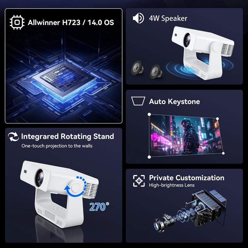 - Przenośny mini projektor z systemem operacyjnym Android 14