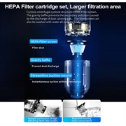 Ten ręczny odkurzacz oferuje idealne połączenie przenośności i mocy czyszczenia. Jego bezprzewodowa konstrukcja, silne ssanie i oświetlenie LED sprawiają, że nadaje się zarówno do szybkiego sprzątania, jak i głębokiego czyszczenia, zarówno w domu, w biurze, jak i w podróży.