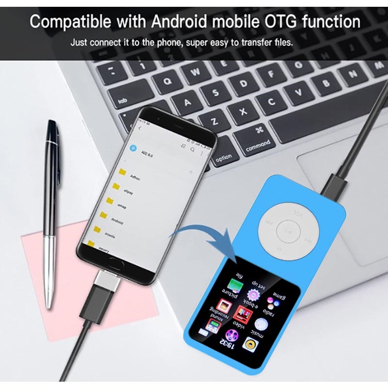 - Przenośny odtwarzacz MP4 z funkcjami odtwarzania muzyki, wideo, e-booków, radia FM i nagrywania