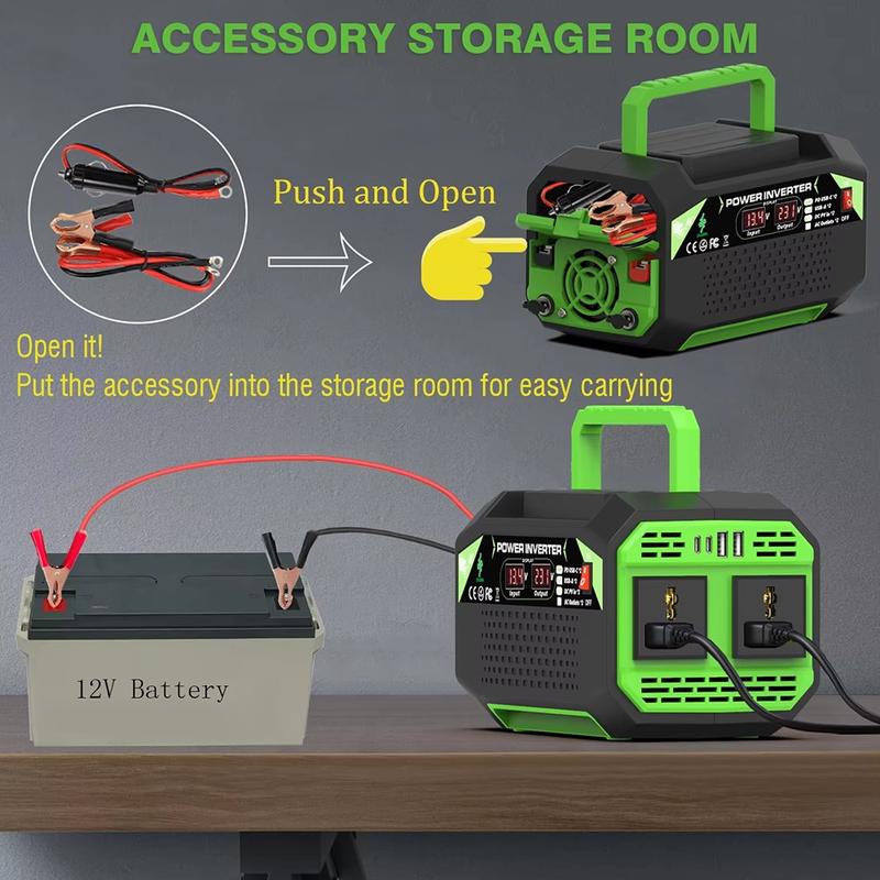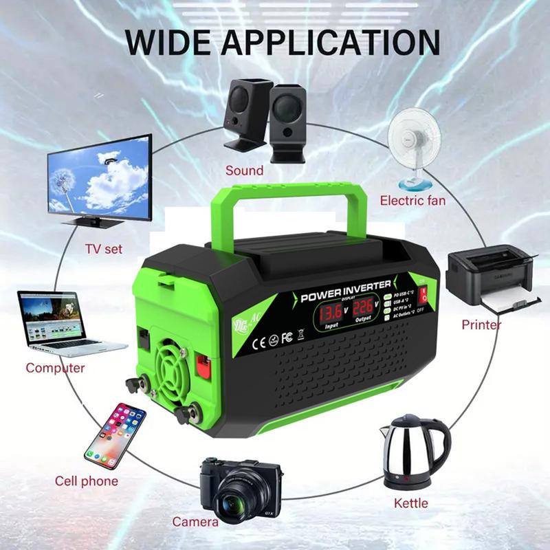 - Wydajna konwersja prądu stałego na prąd zmienny - konwertuje prąd stały 12 V na prąd zmienny 220 V z ciągłą mocą wyjściową 300W i mocą szczytową do 600 W, idealną do laptopów, tabletów, aparatów CPAP, kamer i innych urządzeń przenośnych.