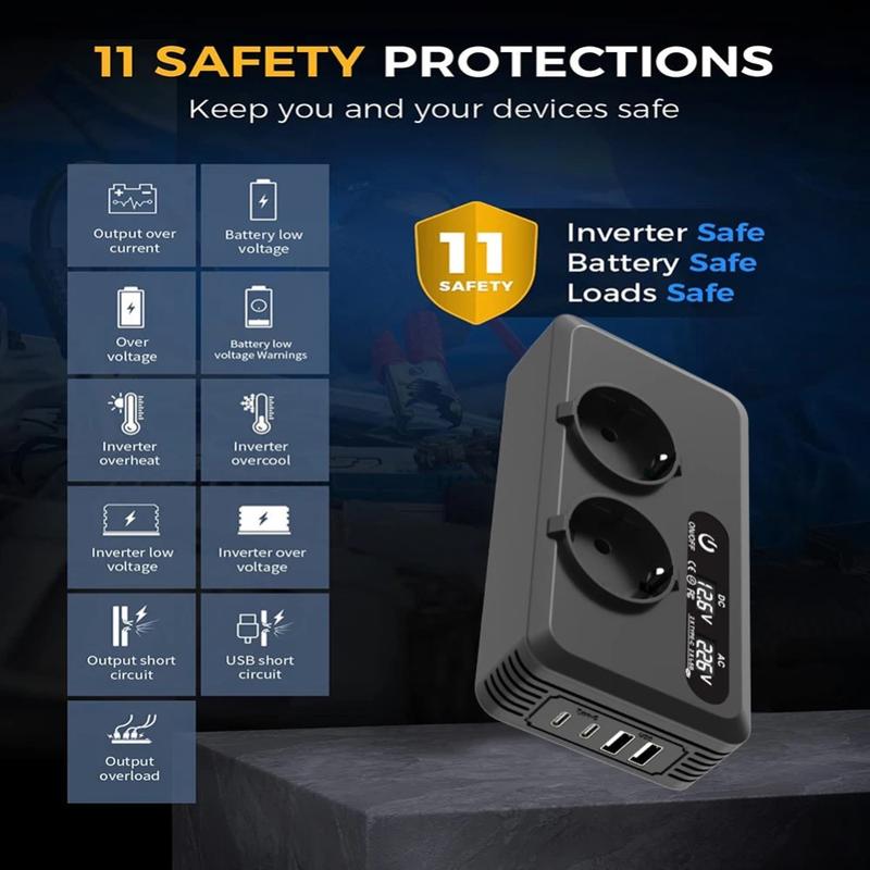 - Wysoka sprawność i wydajność - zapewnia ponad 90% sprawność konwersji ze zmodyfikowaną falą sinusoidalną na wyjściu, zapewniając stabilne i bezpieczne zasilanie większości urządzeń domowych i cyfrowych.