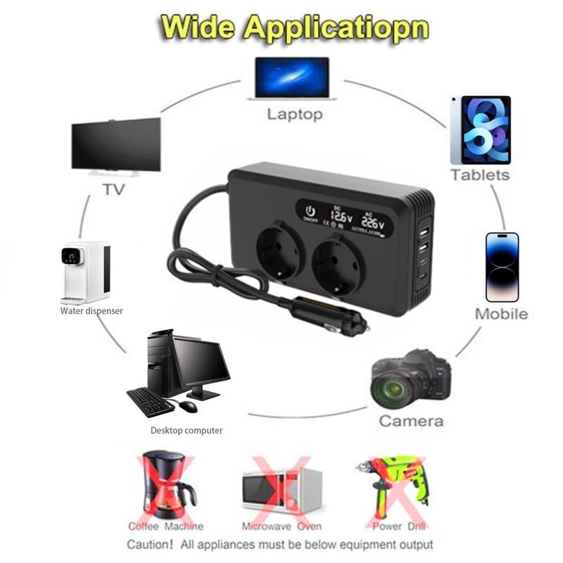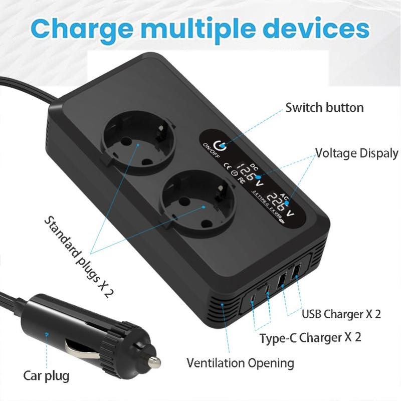 Pozostań zasilany gdziekolwiek jesteś dzięki przetwornicy samochodowej o mocy 200W, niezawodnemu rozwiązaniu do konwersji zasilania pojazdu 12 V DC na 220 V AC. Wyposażony w dwa europejskie gniazda i wiele portów szybkiego ładowania, ten kompaktowy konwerter jest idealny do zasilania laptopów, telefonów, tabletów i małych urządzeń elektronicznych podczas podróży, biwakowania lub w sytuacjach awaryjnych.