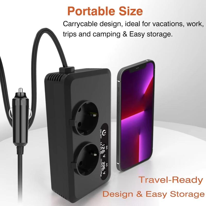 - Wydajna konwersja zasilania - konwertuje napięcie 12 V DC na 220 V AC z mocą ciągłą 200W i mocą szczytową 400 W, idealną dla większości podróżnych i codziennych urządzeń elektronicznych.