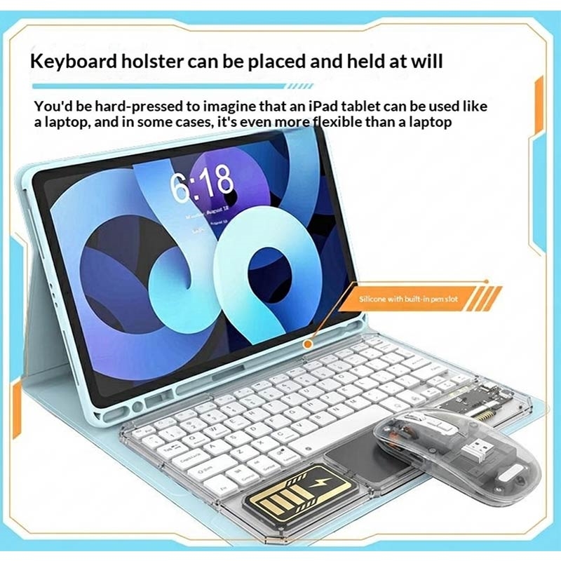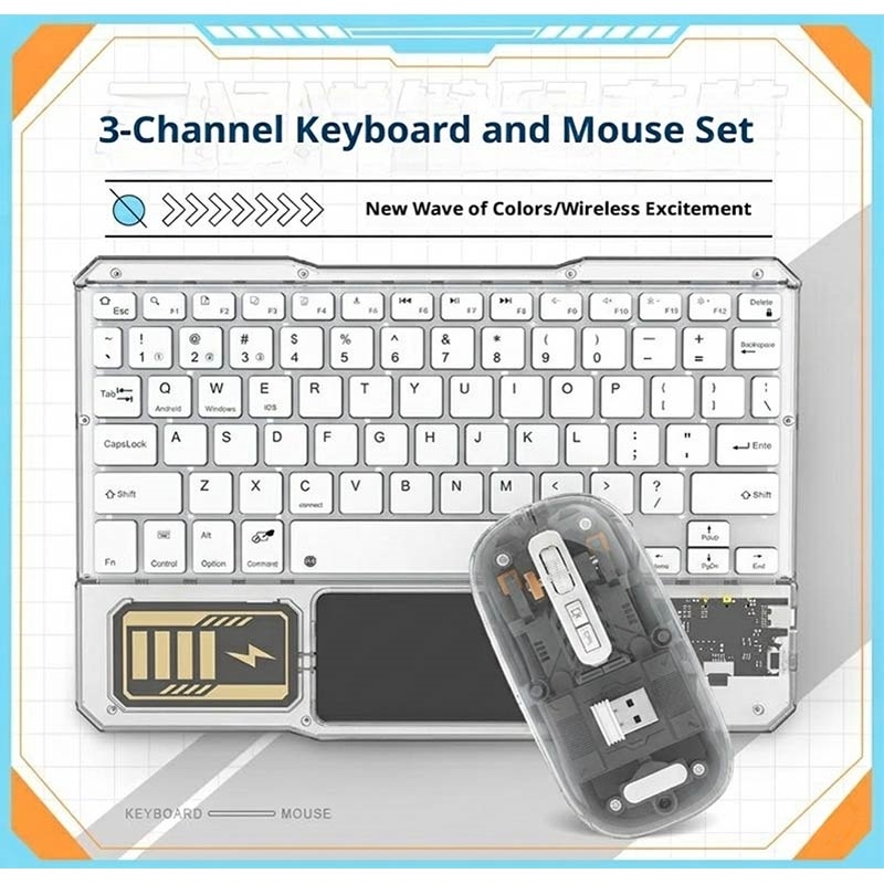 Zestaw przezroczystej klawiatury i myszy Bluetooth KB333 - 3-kanałowa klawiatura bezprzewodowa z podświetleniem RGB i panelem dotykowym