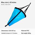 Popraw kontrolę i stabilność na wodzie dzięki tej 42-calowej kotwicy morskiej w rozmiarze L. Zaprojektowany, aby tworzyć opór w wodzie, pomaga zmniejszyć dryfowanie i nagłe ruchy spowodowane wiatrem i falami - przydatne w przypadku skuterów wodnych, nadmuchiwanych łodzi, kajaków, żaglówek i małych łodzi motorowych. Kompaktowa, lekka konstrukcja jest łatwa do przechowywania w ciasnych przedziałach, a automatyczne otwieranie dna pomaga w płynnym rozłożeniu w razie potrzeby. Wykonana z wytrzymałego PVC o wysokiej wytrzymałości ze wzmocnioną taśmą, jest przeznaczona do regularnego użytku morskiego. Uwaga: lina kotwiczna i pływak nie wchodzą w skład zestawu.