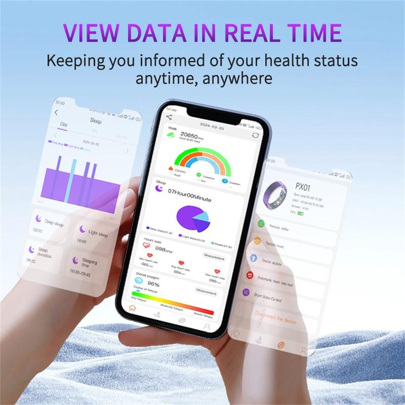 PX01 Inteligentny pierścień do monitorowania snu i zdrowia z bazą ładującą - wodoodporność IP68, inteligentna analiza danych