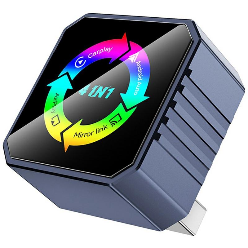 Ulepsz swój samochód dzięki bezprzewodowemu adapterowi 4 w 1 Q1BVS obsługującemu systemy Android Auto i CarPlay. To kompaktowe urządzenie przekształca przewodowe połączenia CarPlay i Android Auto w połączenia bezprzewodowe, a ponadto obsługuje technologie AirPlay i Mirror Link, zapewniając większą elastyczność podczas korzystania z samochodu.