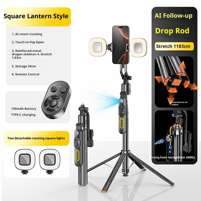 Q625 Bluetooth AI Tracker Quadripod Kijek do selfie - Podwójne światła wypełniające w kształcie litery H, Anti-Shake, zdalne sterowanie