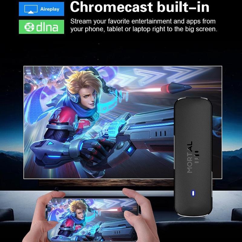 - Urządzenie Smart TV Stick z systemem Android 14.0 do streamingu, aplikacji, mirroringu ekranu i odtwarzania multimediów