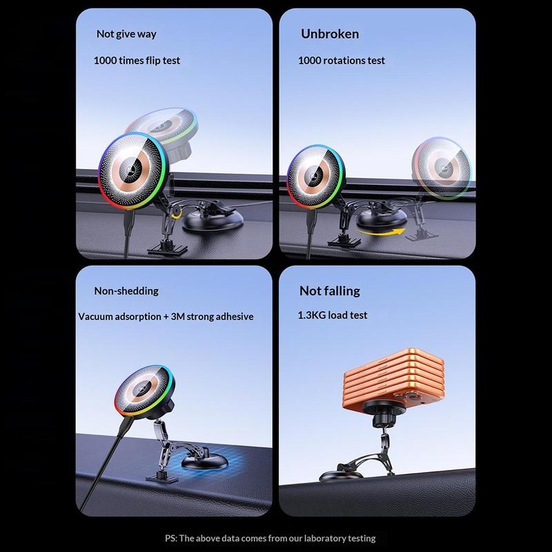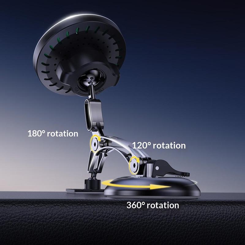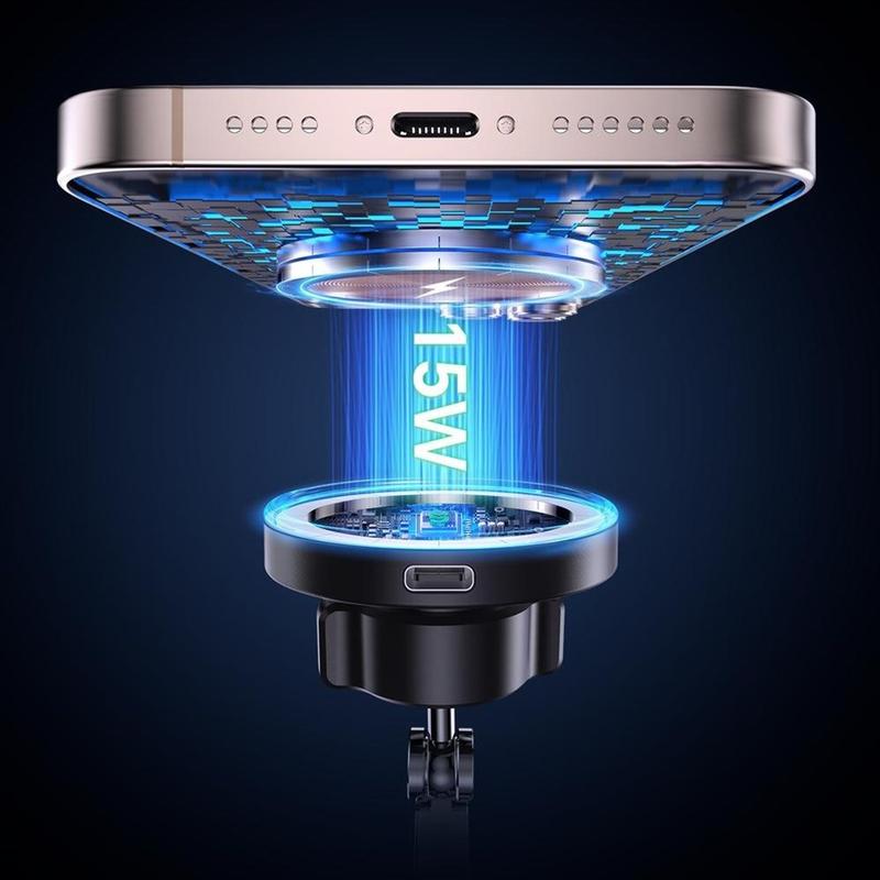 Uchwyt QH-AKD248 został zaprojektowany tak, aby zapewnić ładowanie telefonu, jego stabilność i dobrą widoczność podczas jazdy. Łączy w sobie mocny uchwyt magnetyczny z funkcją bezprzewodowego ładowania o mocy 15 W, dzięki czemu można szybko zamontować telefon i jednocześnie go ładować. Podstawa z przyssawką próżniową zapewnia niezawodne mocowanie na desce rozdzielczej lub przedniej szybie, umożliwiając bardziej estetyczną i wygodną konfigurację w samochodzie.